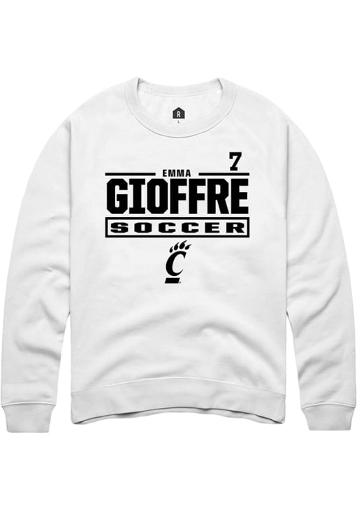 Emma Gioffre Rally Mens White Cincinnati Bearcats NIL Stacked Box Crew Sweatshirt