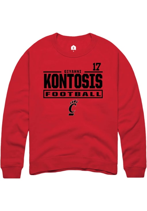 Support your Cincinnati Bearcats and favorite Giyahni Kontosis in this Cincinnati Bearcats Mens Red Football NIL Stacked Box Player Crew. This Crew Sweatshirt features a NIL graphic, and is sure to stand out in the stadium. Perfect to wear on game day or any day!