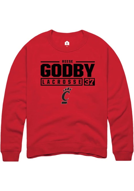 Reese Godby Rally Mens Red Cincinnati Bearcats NIL Stacked Box Crew Sweatshirt