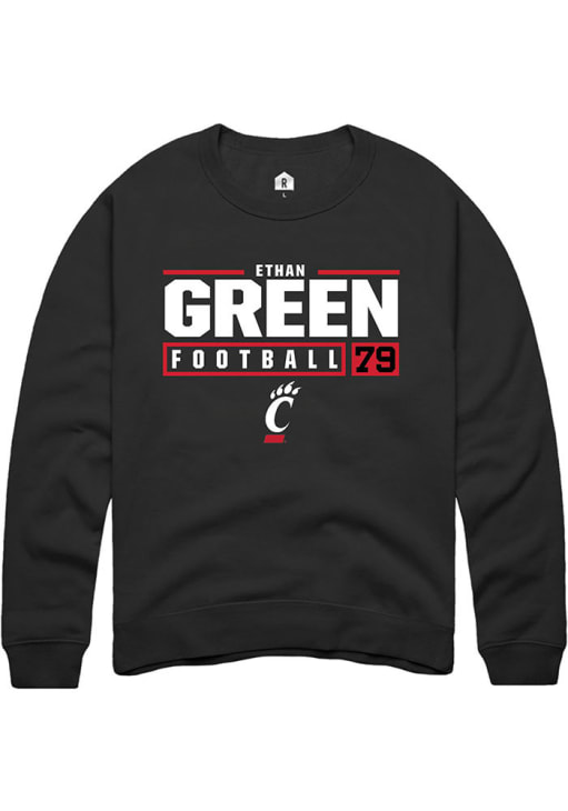 Ethan Green Rally Mens Black Cincinnati Bearcats NIL Stacked Box Crew Sweatshirt