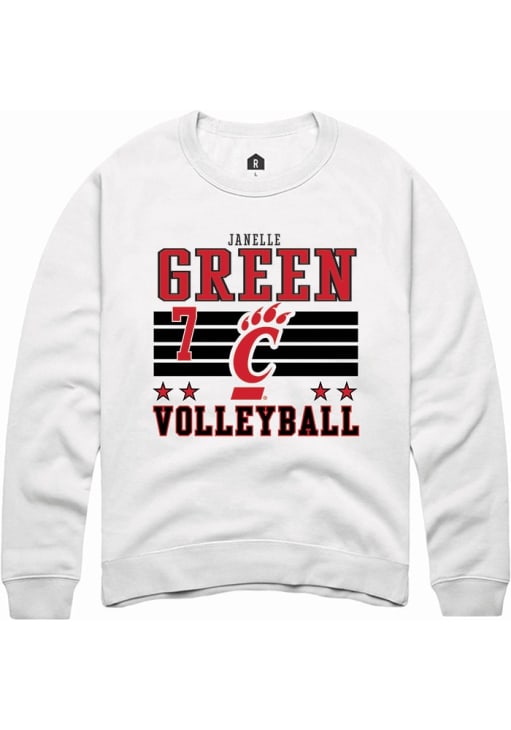 Janelle Green Rally Mens White Cincinnati Bearcats NIL Striped Crew Sweatshirt