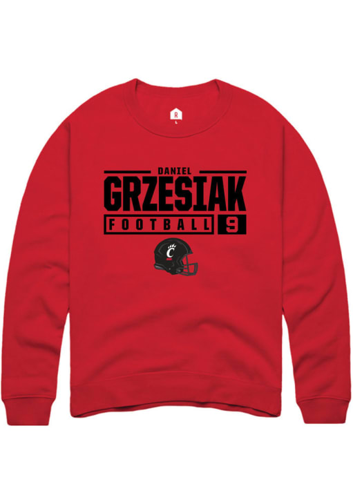 Daniel Grzesiak Rally Mens Red Cincinnati Bearcats NIL Stacked Box Crew Sweatshirt