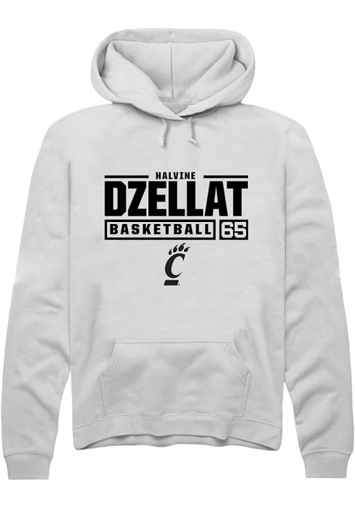 Halvine Dzellat Rally Mens White Cincinnati Bearcats NIL Stacked Box Hooded Sweatshirt
