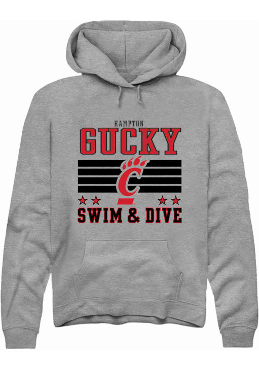 Hampton Gucky Rally Mens Grey Cincinnati Bearcats NIL Striped Hooded Sweatshirt