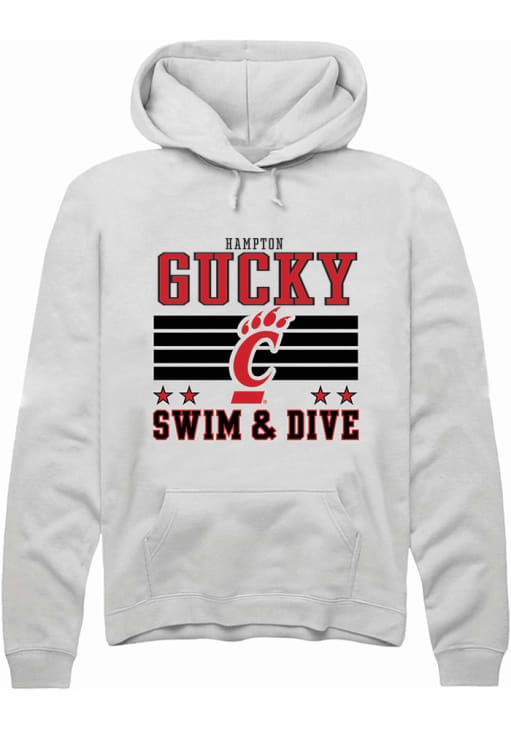 Hampton Gucky Rally Mens White Cincinnati Bearcats NIL Striped Hooded Sweatshirt