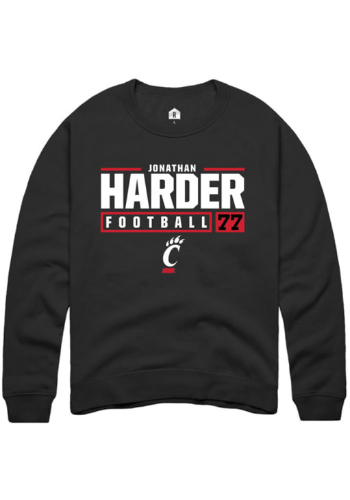 Jonathan Harder Rally Mens Black Cincinnati Bearcats NIL Stacked Box Crew Sweatshirt
