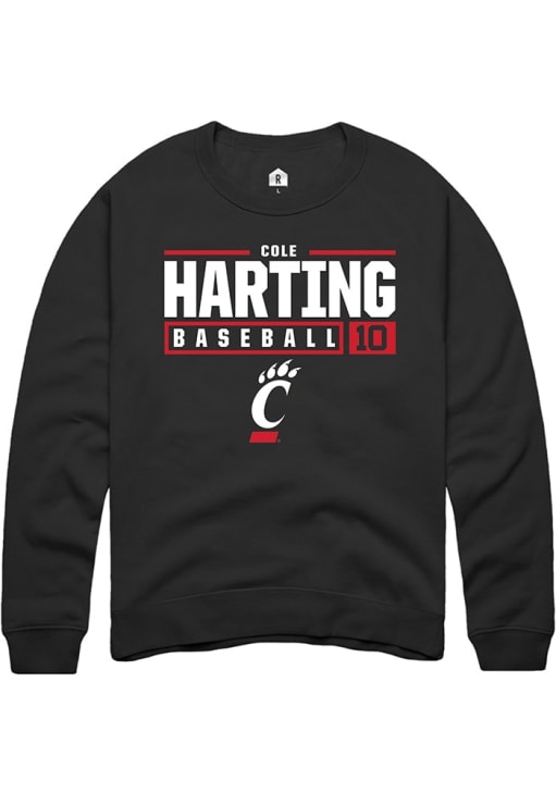 Cole Harting Rally Mens Black Cincinnati Bearcats NIL Stacked Box Crew Sweatshirt