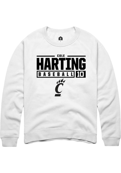 Cole Harting Rally Mens White Cincinnati Bearcats NIL Stacked Box Crew Sweatshirt
