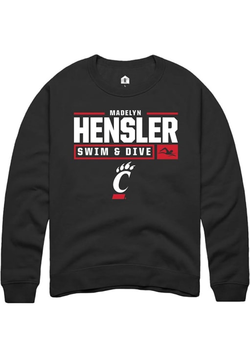 Madelyn Hensler Rally Mens Black Cincinnati Bearcats NIL Stacked Box Crew Sweatshirt