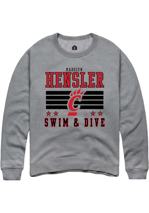 Madelyn Hensler Rally Mens Grey Cincinnati Bearcats NIL Striped Crew Sweatshirt