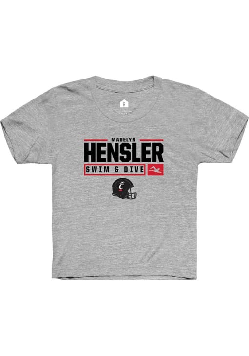Madelyn Hensler Rally Youth Grey Cincinnati Bearcats NIL Stacked Box Short Sleeve T-Shirt