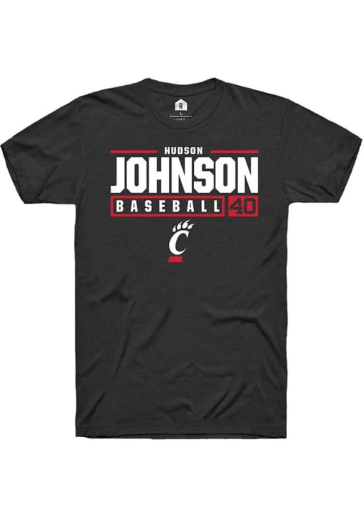 Hudson Johnson Black Cincinnati Bearcats NIL Stacked Box Short Sleeve T Shirt