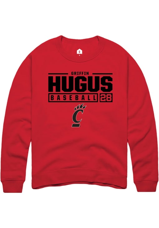 Griffin Hugus Rally Mens Red Cincinnati Bearcats NIL Stacked Box Crew Sweatshirt