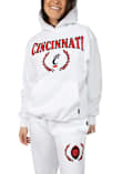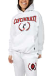 Embrace your Bearcats pride and showcase your team spirit with confidence in this Cincinnati Bearcats Long Sleeve Hoodie! Stay warm and stylish with the Cincinnati Womens White Boyfriend Hooded Sweatshirt. Designed with screen print team name on center chest, this Bearcats Long Sleeve Hoodie is a must-have for dedicated fans.