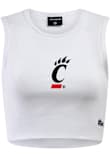Elevate your tailgating style with this Cincinnati Bearcats Womens Tank Top. Stay fashionable and comfortable in the refreshing White Cut Off Sleeveless Shirt. Discover the enticing details of this Cincinnati Tank Top, showcasing a screen print team logo on center chest that's sure to impress.