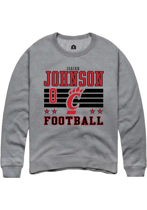 Support your Cincinnati Bearcats and favorite Isaiah Johnson in this Cincinnati Bearcats Mens Grey Football NIL Striped Player Crew. This Crew Sweatshirt features a NIL graphic, and is sure to stand out in the stadium. Perfect to wear on game day or any day!