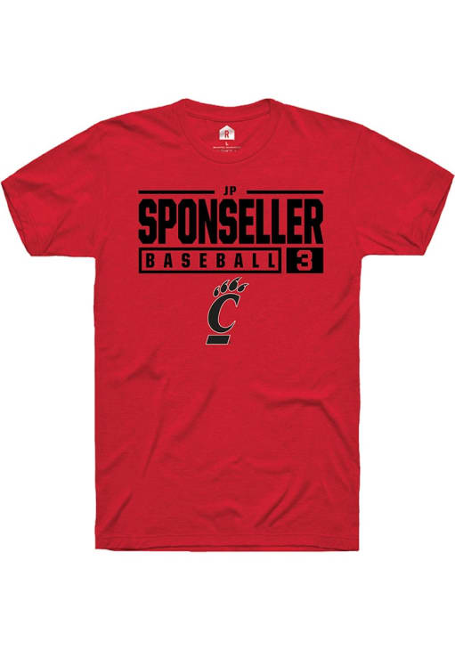 JP Sponseller Red Cincinnati Bearcats NIL Stacked Box Short Sleeve T Shirt
