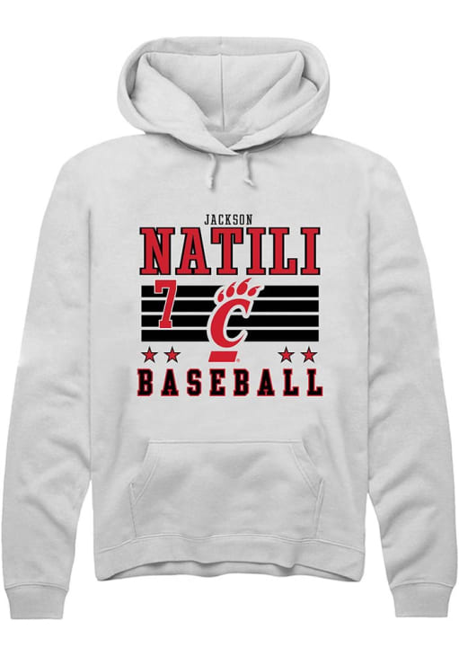 Jackson Natili Rally Mens White Cincinnati Bearcats NIL Striped Hooded Sweatshirt