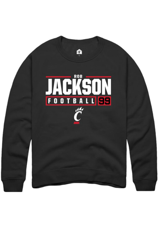 Rob Jackson Rally Mens Black Cincinnati Bearcats NIL Stacked Box Crew Sweatshirt
