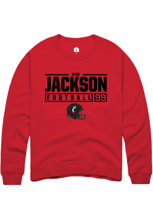 Rob Jackson Rally Mens Red Cincinnati Bearcats NIL Stacked Box Crew Sweatshirt