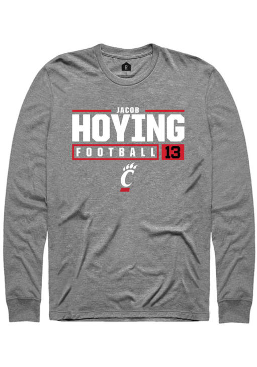 Jacob Hoying Rally Mens Graphite Cincinnati Bearcats NIL Stacked Box Tee