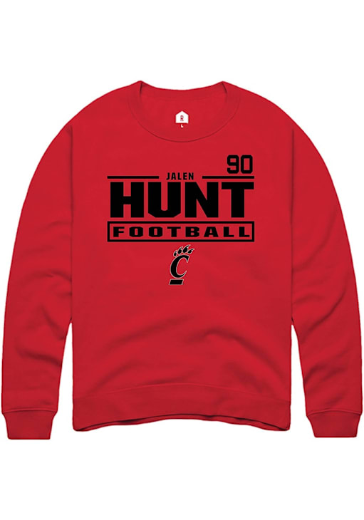 Support your Cincinnati Bearcats and favorite Jalen Hunt in this Cincinnati Bearcats Mens Red Football NIL Stacked Box Player Crew. This Crew Sweatshirt features a NIL graphic, and is sure to stand out in the stadium. Perfect to wear on game day or any day!