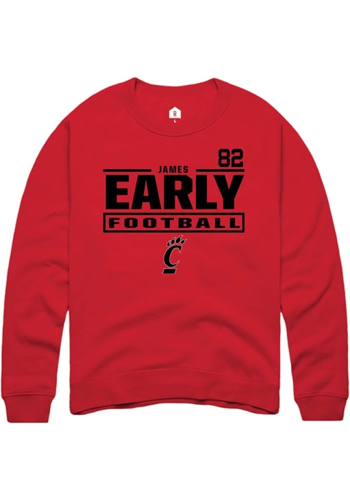 Support your Cincinnati Bearcats and favorite James Early in this Cincinnati Bearcats Mens Red Football NIL Stacked Box Player Crew. This Crew Sweatshirt features a NIL graphic, and is sure to stand out in the stadium. Perfect to wear on game day or any day!