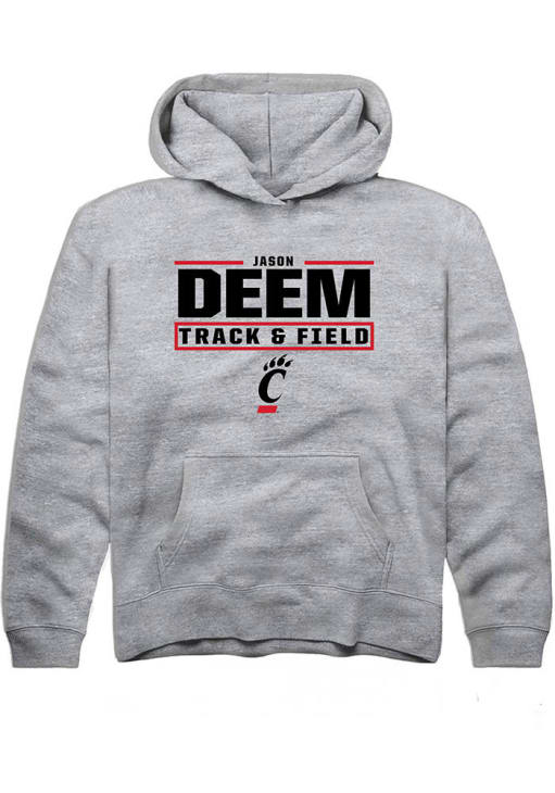 Jason Deem Rally Youth Grey Cincinnati Bearcats NIL Stacked Box Long Sleeve Hooded Sweatshirt