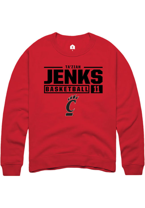 Ta'Ziah Jenks Rally Mens Red Cincinnati Bearcats NIL Stacked Box Crew Sweatshirt