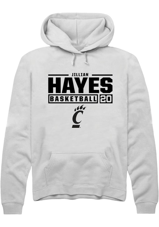 Jillian Hayes Rally Mens White Cincinnati Bearcats NIL Stacked Box Hooded Sweatshirt