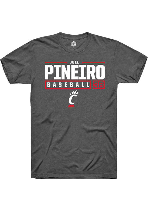Joel Pineiro Dark Grey Cincinnati Bearcats NIL Stacked Box Short Sleeve T Shirt
