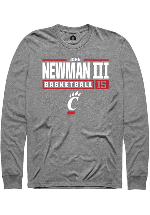 John Newman III Rally Mens Graphite Cincinnati Bearcats NIL Stacked Box Tee