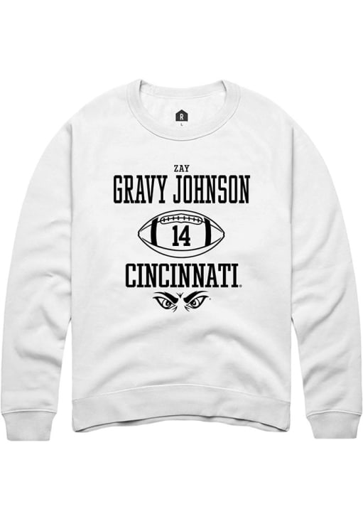 Zay Gravy Johnson Rally Mens White Cincinnati Bearcats NIL Sport Icon Crew Sweatshirt