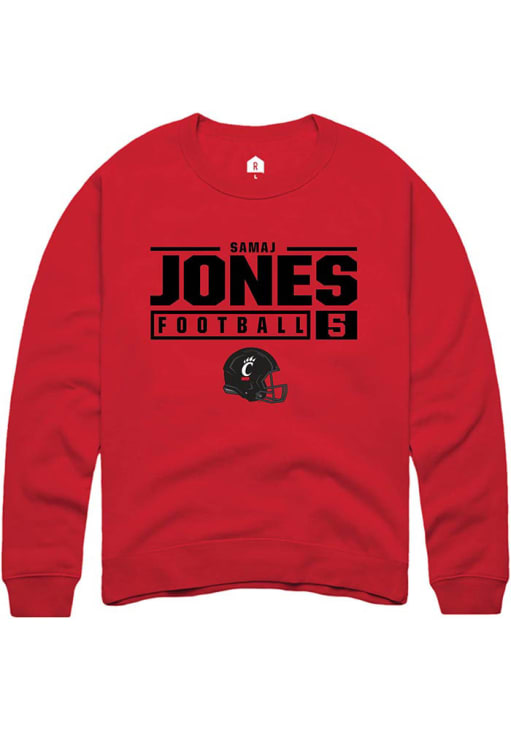 Samaj Jones Rally Mens Red Cincinnati Bearcats NIL Stacked Box Crew Sweatshirt