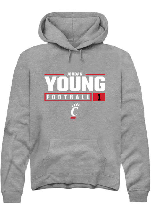 Jordan Young Rally Mens Graphite Cincinnati Bearcats NIL Stacked Box Hooded Sweatshirt