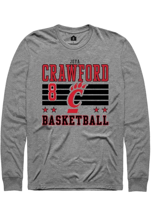 Embrace the spirit of your favorite player in this Cincinnati Bearcats Grey NIL Striped Joya Crawford Long Sleeve Player Tee! This Player T Shirt features a NIL graphic, so everyone will know you cheer for Cincinnati, Joya Crawford! This is the perfect Bearcats Player Tee for game days. Go Bearcats!!