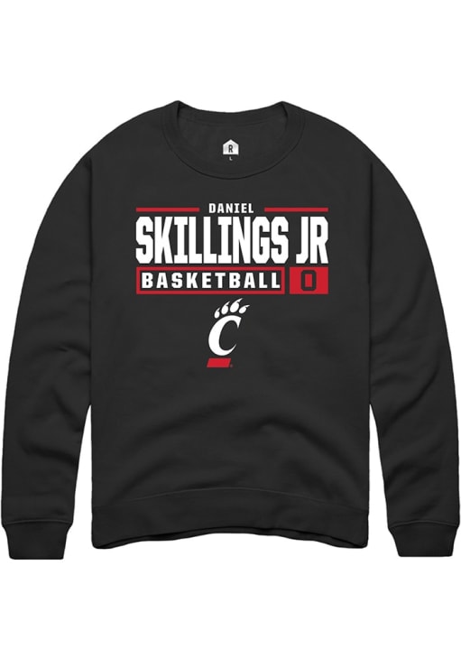 Daniel Skillings Jr. Rally Mens Black Cincinnati Bearcats NIL Stacked Box Crew Sweatshirt