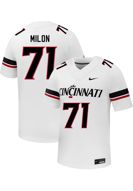 Get in the game with this ultimate Cincinnati Bearcats Mens White NIL Name And Number Football Jersey. Wear this Jersey to the upcoming tailgate or game for your Bearcats. With a vinyl letters and numbers, this Mens Football Jersey is a great way to show your team spirit in style.