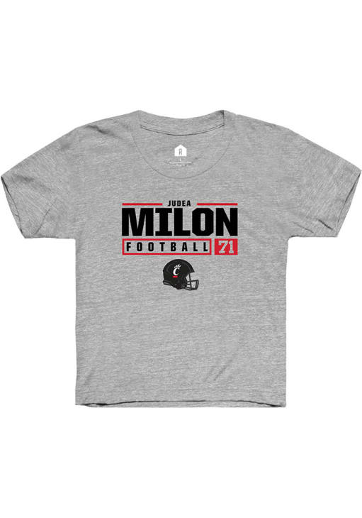 Judea Milon Rally Youth Grey Cincinnati Bearcats NIL Stacked Box Short Sleeve T-Shirt