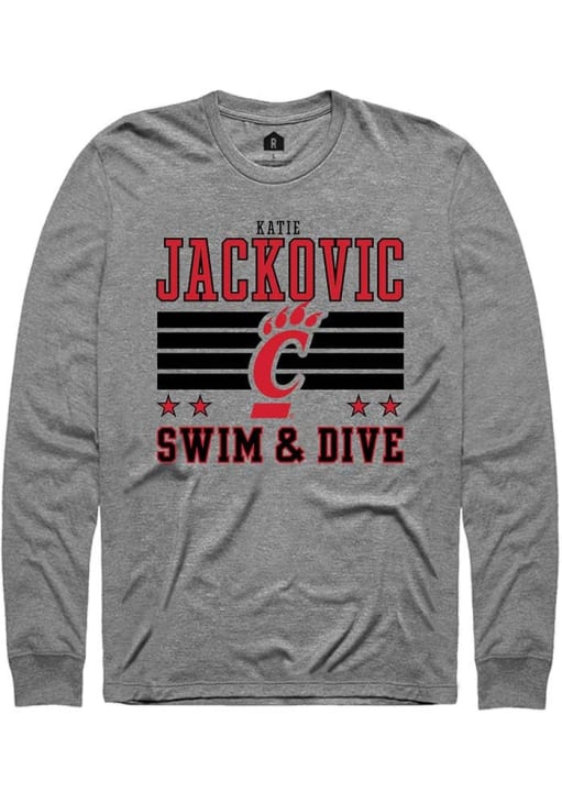 Embrace the spirit of your favorite player in this Cincinnati Bearcats Grey NIL Striped Katie Jackovic Long Sleeve Player Tee! This Player T Shirt features a NIL graphic, so everyone will know you cheer for Cincinnati, Katie Jackovic! This is the perfect Bearcats Player Tee for game days. Go Bearcats!!
