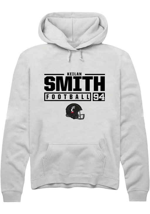 Keilan Smith Rally Mens White Cincinnati Bearcats NIL Stacked Box Hooded Sweatshirt