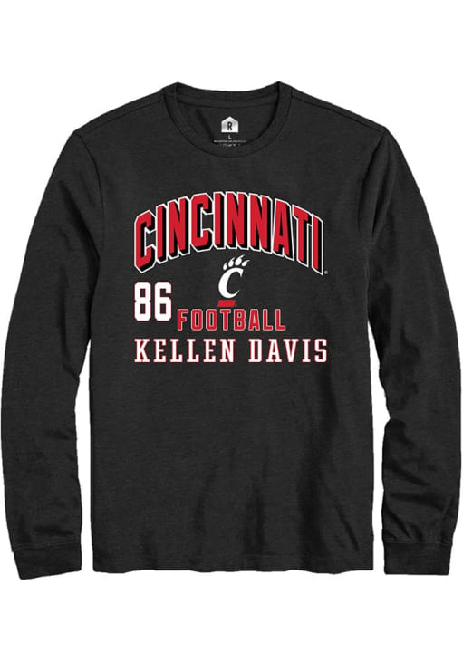 Embrace the spirit of your favorite player in this Cincinnati Bearcats Black Football NIL Arch Logo Kellen Davis Long Sleeve Player Tee! This Player T Shirt features a NIL graphic, so everyone will know you cheer for Cincinnati, Kellen Davis! This is the perfect Bearcats Player Tee for game days. Go Bearcats!!
