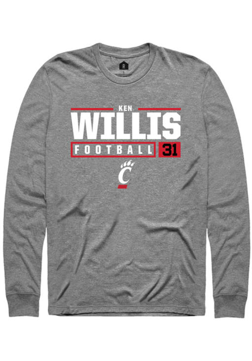 Ken Willis Rally Mens Graphite Cincinnati Bearcats NIL Stacked Box Tee