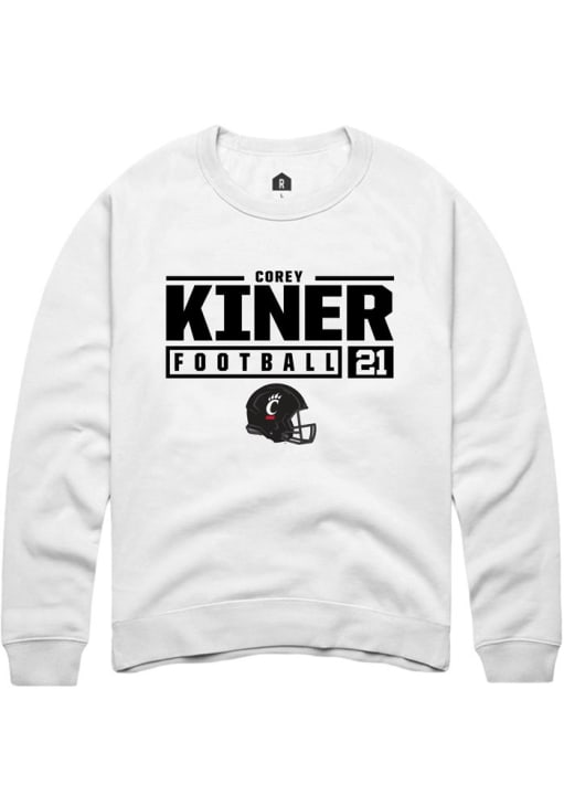 Corey Kiner Rally Mens White Cincinnati Bearcats NIL Stacked Box Crew Sweatshirt