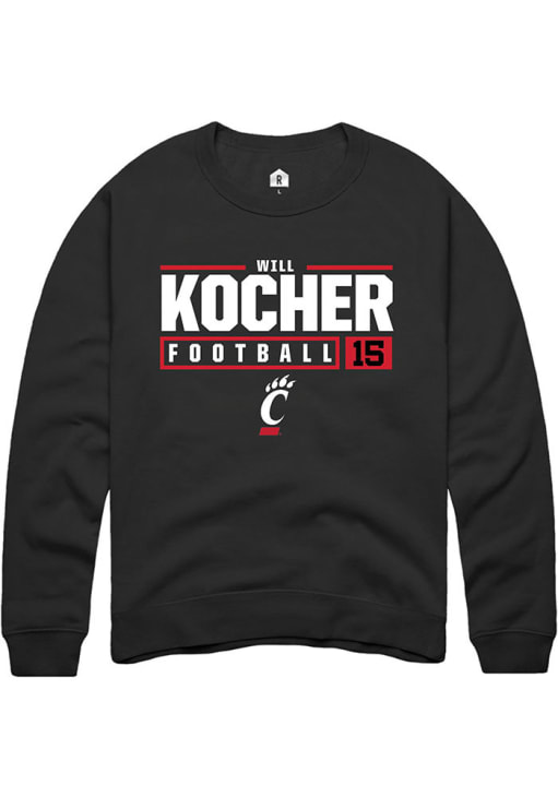 Will Kocher Rally Mens Black Cincinnati Bearcats NIL Stacked Box Crew Sweatshirt