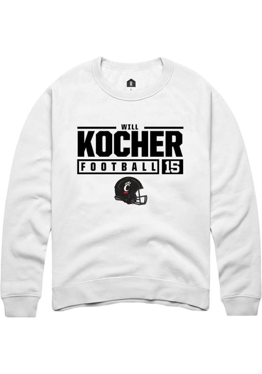 Will Kocher Rally Mens White Cincinnati Bearcats NIL Stacked Box Crew Sweatshirt
