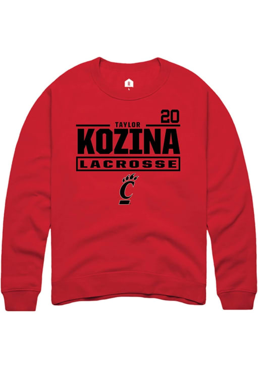 Taylor Kozina Rally Mens Red Cincinnati Bearcats NIL Stacked Box Crew Sweatshirt