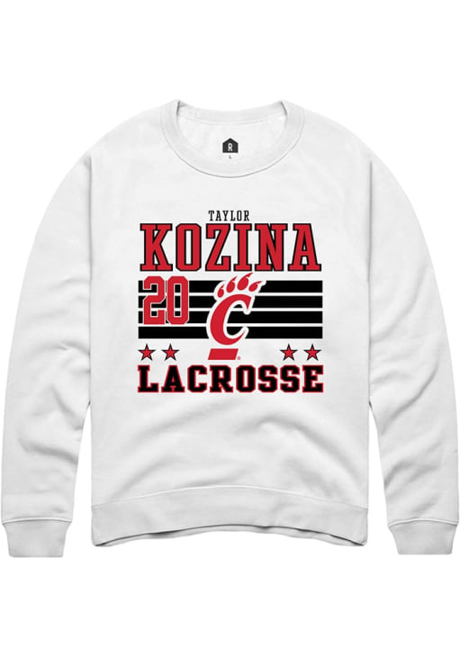 Gear up for the ultimate game day experience with this remarkable Cincinnati BearcatsMens White NIL Striped Crew Sweatshirt! Designed with the true fan in mind, this Bearcats Long Sleeve Crew Sweatshirt features a custom graphic with player's name and number. Stay warm and comfortable with this Mens Cincinnati Bearcats Crew Sweatshirt.