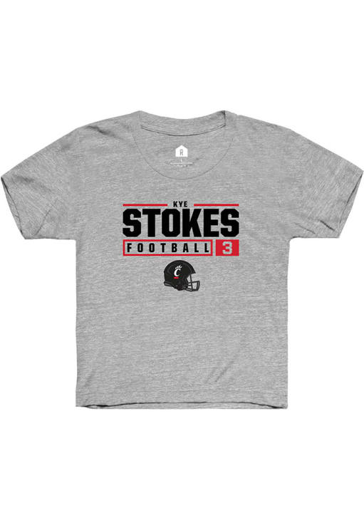 Size Chart for Kye Stokes Rally Youth Grey Cincinnati Bearcats NIL Stacked Box Short Sleeve T-Shirt