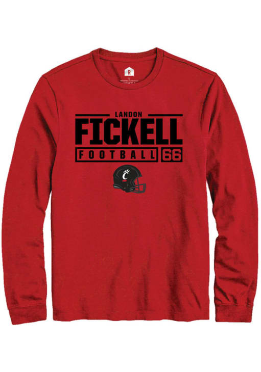 Landon Fickell Rally Mens Red Cincinnati Bearcats NIL Stacked Box Tee